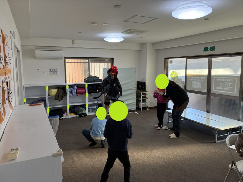 2チームに分かれ、鬼に扮した職員を追い払いました👹